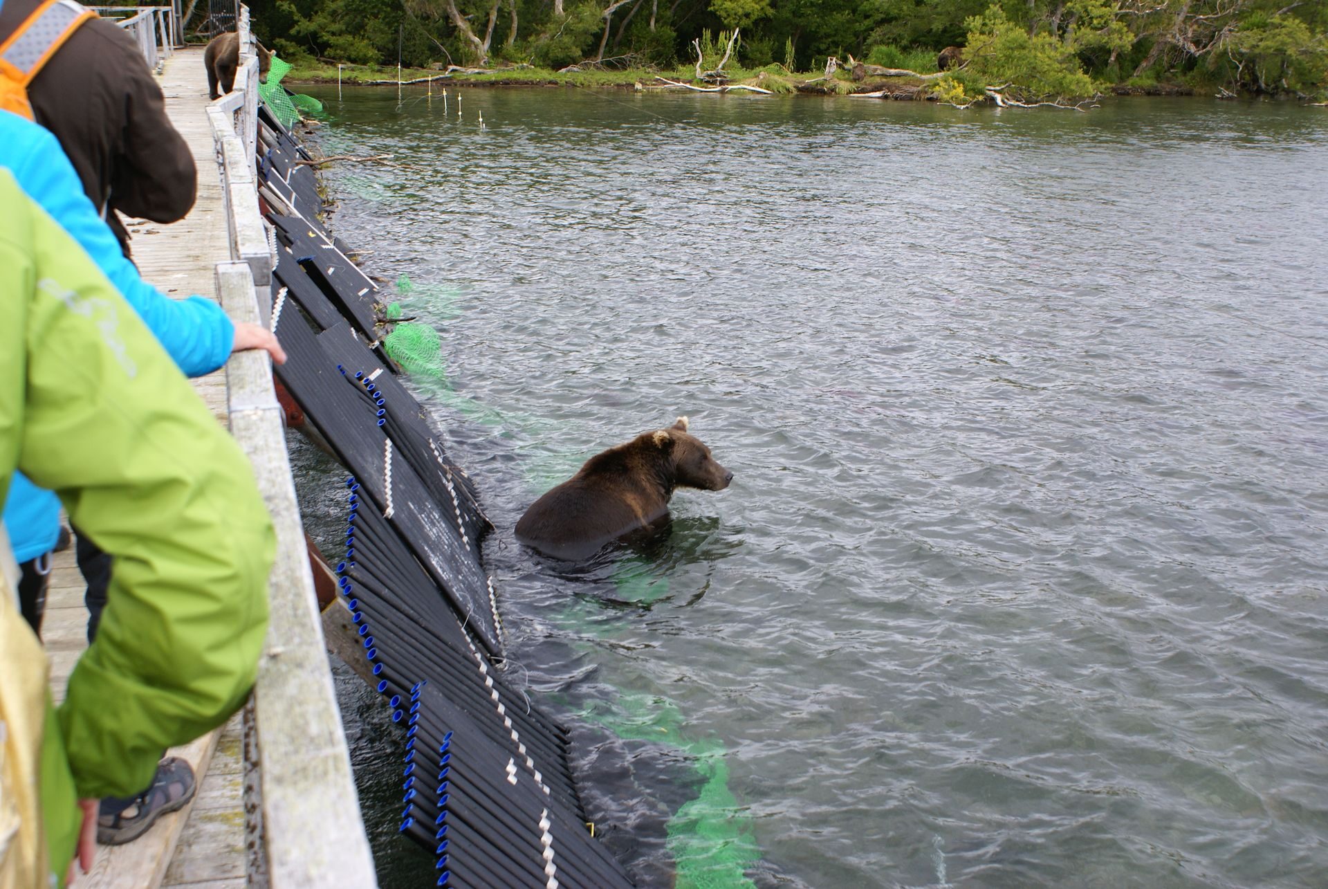 Перемирие заключено только на момент нереста лосося. Смысла ссориться нет - рыбы всем хватит. Нерест начинается рано: первая рыбка заходит в озеро в мае, а последняя в феврале. Но медведи появляются на озере только когда рыбы достаточно – с июля по сентябрь. И для туристов это самое лучшее время наблюдений за мишками и их детишками.