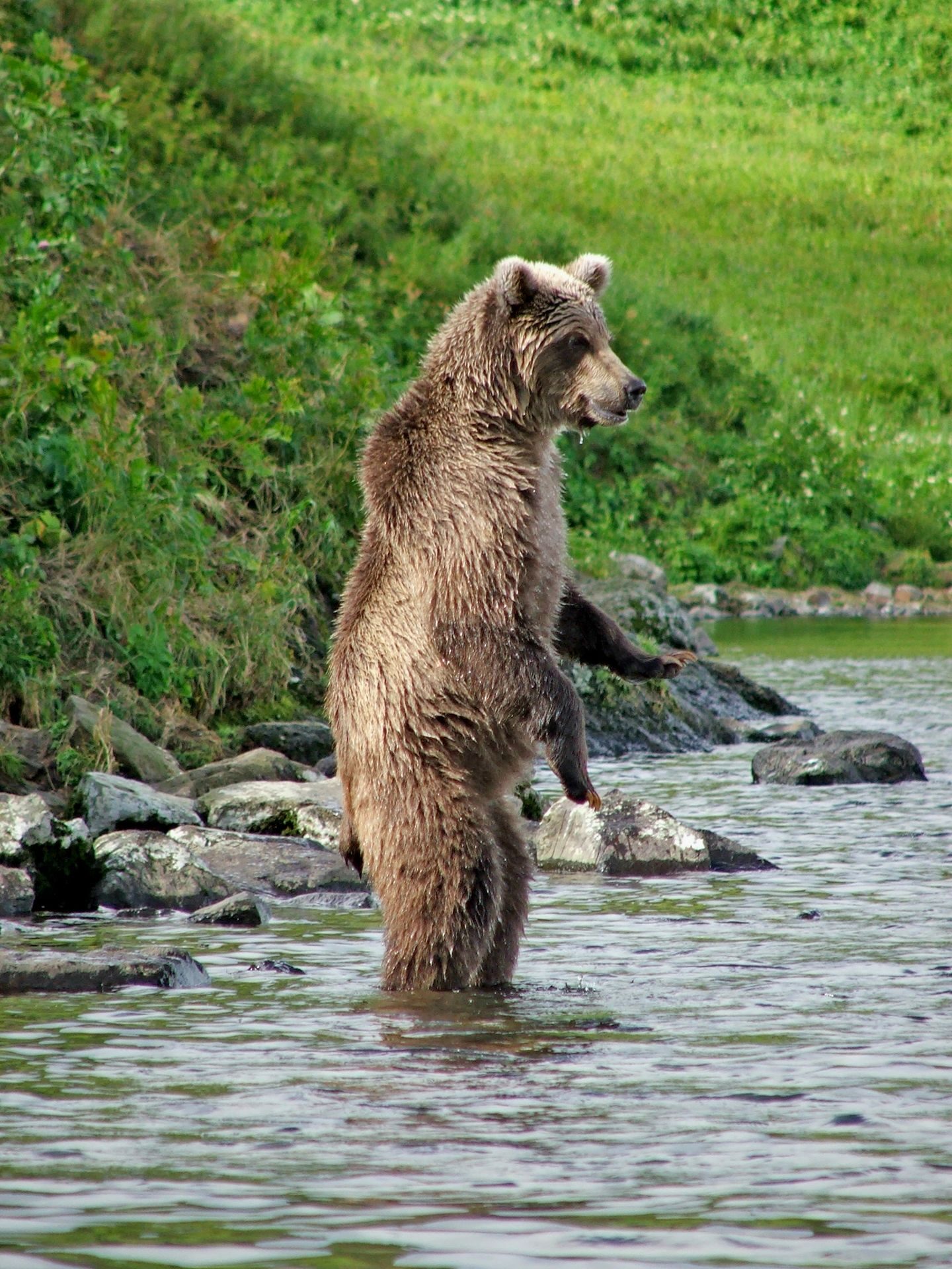 Перемирие заключено только на момент нереста лосося. Смысла ссориться нет - рыбы всем хватит. Нерест начинается рано: первая рыбка заходит в озеро в мае, а последняя в феврале. Но медведи появляются на озере только когда рыбы достаточно – с июля по сентябрь. И для туристов это самое лучшее время наблюдений за мишками и их детишками.